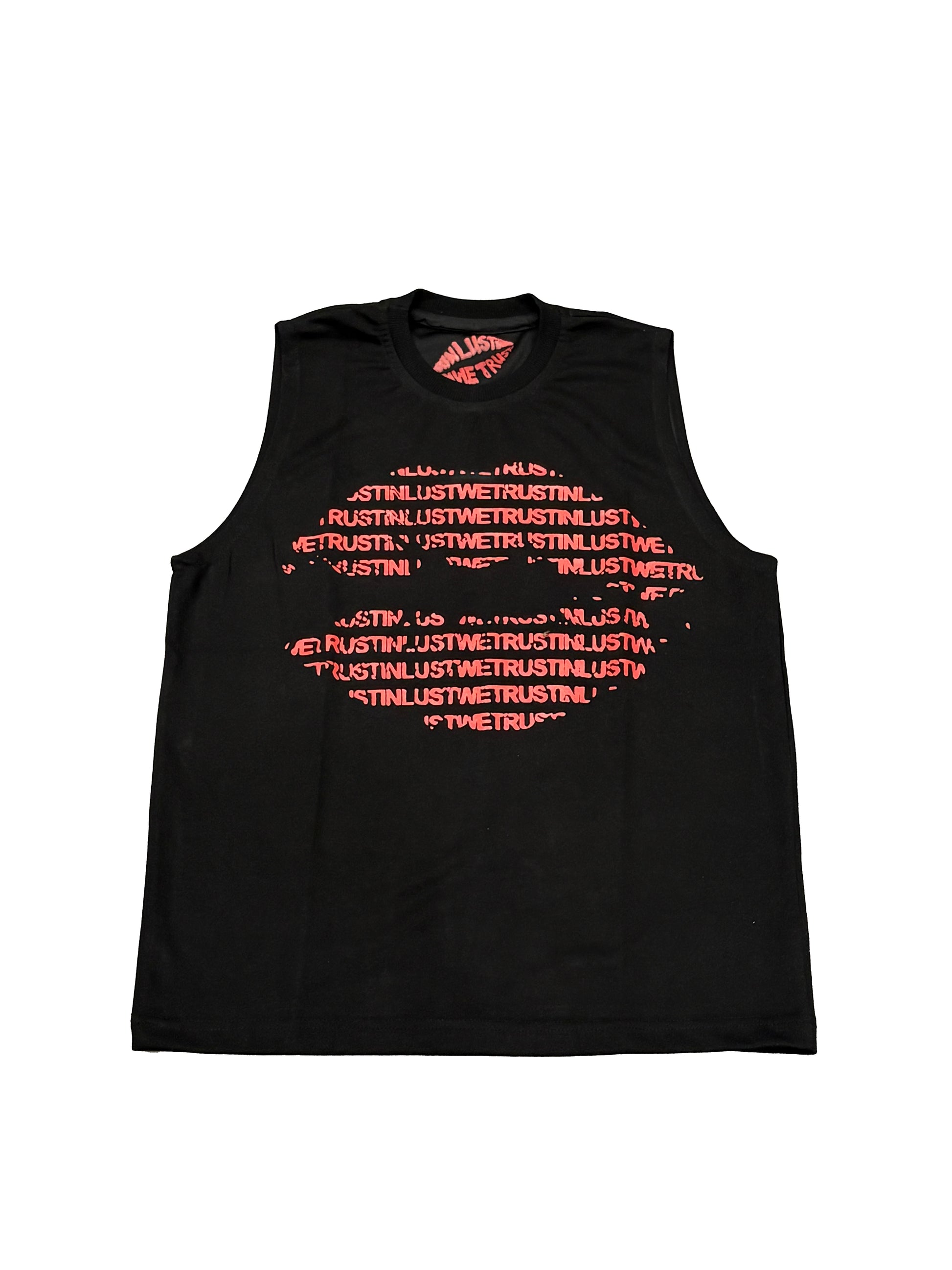 Minimal cut, maximum statement. The LUST TANK takes a classic black sleeveless design and flips it into a bold streetwear essential. Front and center, a lip-shaped graphic built from repeated “IN LUST WE TRUST” text pops in striking red, making it impossible to ignore.